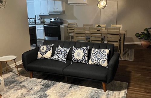 Enjoy a peaceful stay at this 3-bedroom/3bath house in Collierville. This lovely property features 3 queen beds, 2 twin beds, 3 bathrooms. Each Bedroom has a bath in it or next to it.A cozy living room with a futon, and essential amenities like a washing machine, dryer, keurig coffee bar, and an office area with WiFi. We think our place will help you experience everything the beautiful town of Collierville has to offer.