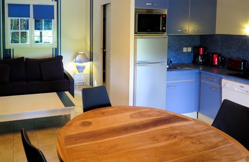 Resort "Collines Iduki", 2 storeys. 36 apartments in the residence. 500 m from the centre of La Bastide-Clairence, 8.5 km from the centre of Hasparren, 25 km from the centre of Bayonne, on a slope, 35 km from the sea, 35 km from the beach, 100 m from the river. For shared use: property 3 ha with plants and trees, natural garden, swimming pool heated (12 x 6 m, depth 80 - 120 cm, seasonal availability: 01.May. - 30.Sep.). Outdoor shower, table tennis, terrace. In the complex: reception, restaurant, table football, washing machine, tumble dryer (for shared use, extra). Parking (limited number of spaces). E-charging station. Grocery 500 m, supermarket 9 km, restaurant 500 m, bus stop "Bourg" 5 km, sandy beach "Biarritz, Anglet" 35 km. Nearby attractions: Joyeuse River (canoe possible) 100 m. Please note: the photograph shows a typical example.