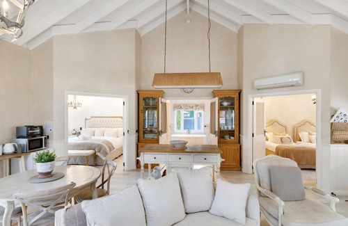 Beautifully appointed with whitewash and timber, this light airy space reminds you more a French