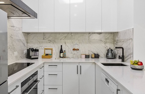Experience a colonial 1840's Georgian cottage with modern contemporary fixtures and fittings. There is a lovely, naturally lit sitting are with leather Chesterfield, gas fireplace, flat screen TV and TV cabinet with an interesting array of books. A fully appointed kitchenette with stone bench tops, induction cook top, top of the range oven and full height stainless steel fridge. There is a small breakfast bar with stone bench top, French doors leading out to the private rear courtyard with an outdoor setting. The bathroom is high end, large shower head, large stone bench top, clothes dryer and washing machine. There is a large modern sink and make-up mirror.I also provide beautiful Aveda products. There are two bedrooms, one with a queen bed, the other typically a small Georgian room overlooking the garden, a study desk, a "king-single" bed and extra hanging space. All bedding boasts superb Linen.