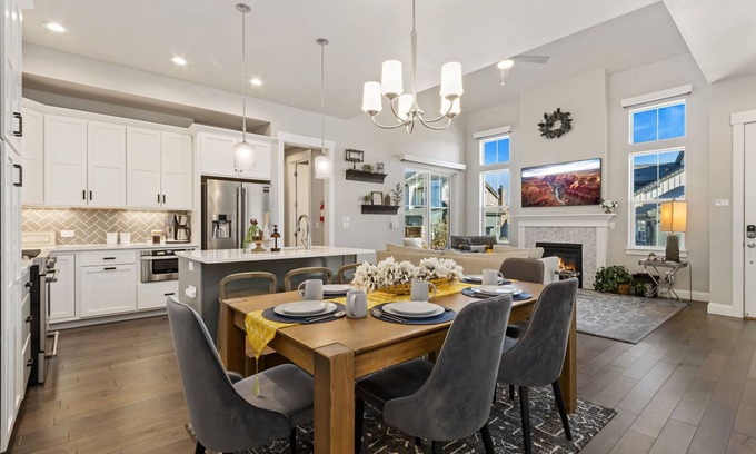 Step into this modern Colorado home and enjoy the perfect blend of style and comfort. The spacious living area features vaulted ceilings that flood the home with natural light, while multiple indoor fireplaces create a warm and inviting atmosphere. Meanwhile, the media room offers endless entertainment with its 85” smart TV, Skeech table and wet bar. Whether you’re preparing a meal in the chef’s kitchen or attending a meeting from the remote workstation, this house is sure to feel like home.