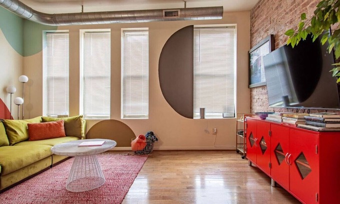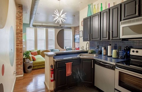 Colorful & Quirky 2-BR Loft w/Private Deck | MICA, JH & UMMC is located in Downtown Baltimore. Colorful & Quirky 2-BR Loft w/Private Deck | MICA, JH & UMMC provides accommodation, featuring Internet, Kitchen, Laundry, among other amenities. This Apartment features Internet, Kitchen, Laundry, to make your stay a comfortable one.