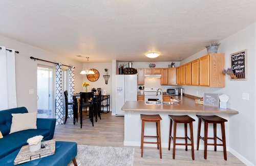 This cozy townhome will help you relax from a long day of shopping, biking and exploring. The full kitchen will allow you to cook at your own convenience. Walk out, fenced in patio features a large, green area to relax and enjoy your morning brew or