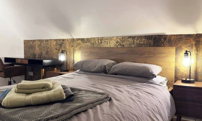 Experience modern style and artistic flair at 3A Columbia Avenue. This 3-bed home features a king and two doubles sleeping up to 6. Unique copper feature walls, textured finishes, and original art create a visually inspiring stay. Enjoy a bright lounge, fully equipped kitchen, and ambient lighting. Perfect for guests seeking comfort with a creative twist.