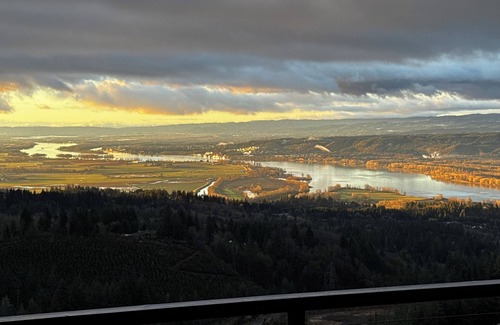 Sitting at 1500 feet above the valley is perched a quiet, and peaceful sanctuary. Epic view of the Columbia River Valley with Mount Hood and the City of Portland in the background.