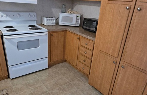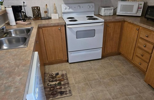 The Refuge is a clean, neat single-wide mobile home situated directly across from a cove of the lake with native grasses and cypress trees framing the lake like a picture out of a magazine. The porch overlooks the lake toward the west which makes for excellent sunset views. One of the bedrooms faces the lake too which allows you to enjoy the sunsets in the comfort of air conditioning or heated space.