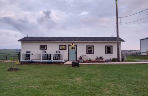 Welcome! Originally built in the 1950’s, this remodeled dairy barn is set on a hill overlooking a beautiful valley with red hills in the distance in rural Chickasha, OK. NOTE: There is about 3/4 mile of gravel road after you turn off the main road. Come Unplug, relax, and unwind in this clean and homey place! There are no TV’s in the cottage, but free fiber optic WIFI for your devices.