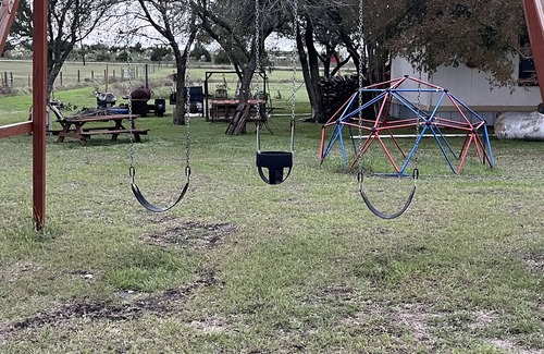 1500 Sq Feet country house on pier & beam, 80/10 foot front porch & half porch rear house, large 6' bbq pit with smaller pit, swings, volleyball net, jungle gym play dome, horse shoes, connect four, lots boardgames, barrel train, soccer net, farm eggs and outdoor working stage for musicians or bands. This is a fully furnished house ready to move into and use for your pleasure and fun activities