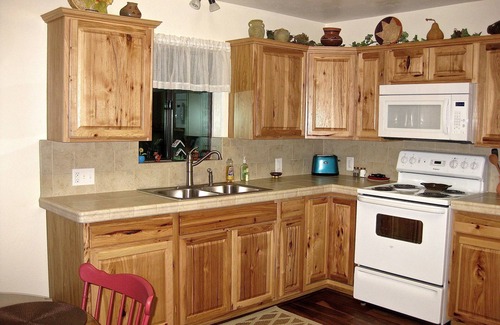 Come and enjoy the beauty and tranquility of our Arizona home. Awe inspiring sunsets and quiet nights add to a relaxing visit. Guest house has 2 bedrooms with queen size beds. . The bath has a large walk in shower. The guest house is fully contained with refrigerator, oven, microwave and all cooking utensils/dishes. Each bedroom has AC units and fans. The living room has an AC unit with a fan also. There is a wall heater for the warmth and electric heaters in bathroom and master bedroom.
