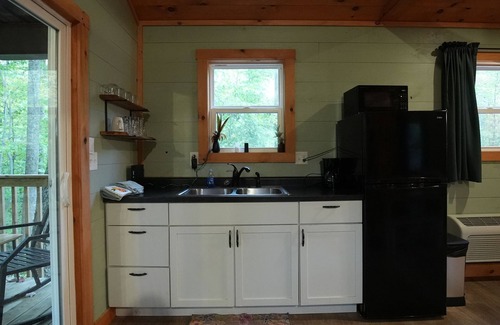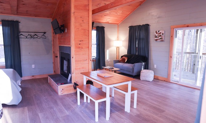 Enjoy a soak in the hot tub on a private balcony with a view of nature or tap into our WI-FI and simply chill with Netflix on our cozy couch or queen-sized memory foam mattress. This is the perfect quaint little getaway cabin! This Cabin is also equipped with a kitchenette and charcoal grill for cooking. And outdoor seating around firepit for smores or just keeping worm by the fire. Come relax at Avenwood Cabins.