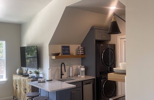 Welcome to this brand new beautiful home located in Lake Eufaula's newest community, Patriot Pointe. This cozy space offers everything you need for a great couples escape. A king size bed with high end linens for a restful nights sleep. A fully equipped kitchen and washer/dryer give all the comforts of home. The living room is furnished with a 55' smart tv, queen size sleeper sofa and chair to relax at the end of fun day. The patio comes furnished with a dining table, chairs and a gas grill.