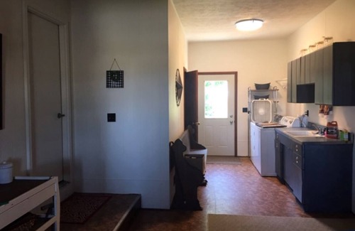 Home offers plenty of room for work or play. 2 bedrooms with queen beds, full bath, living room, dining area and full kitchen. Mud room boasts a large work space, half bath, and washer and dryer.