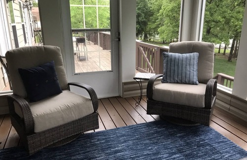 Enjoy breathtaking views from the large deck and screened in porch. Serve large family meals from the oversized custom kitchen. Kitchen is well stocked including spices. Open floor plan suitable for entertaining. Endulge in the master bath with a large jacuzzi and deluxe walk in shower. Fish, swim, and sun from the dock by day and roast marshmallows at night around the stacked stone fire pit.