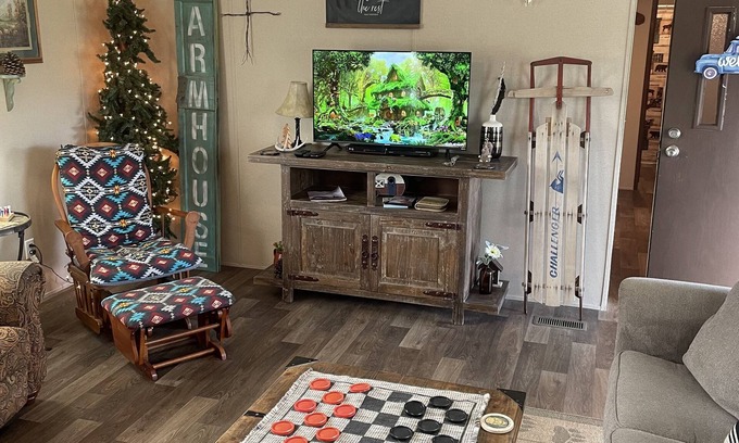 COME SEE US AT JENNY'S FARMHOUSE ! FUN FOR EVERYONE ! ALWAYS SOMETHING TO DO ! has 3 Bedrooms , 2 Bathrooms, and max occupancy of 7 people. The minimum rental for this property is 1 nights, but this can change depending on the season you plan on staying. Previous guests have given good rated it, and VRBO labeled it a top-rated House because of the excellent services rendered by the owner or manager of this House, and has consistently provided great experiences for their guests. Most families or guests that use it recommend it to their friends and some of them are repeat guests. House has a friendly neighborhood, and the Smithville has interesting places to visit. If you want to learn more about the House in Smithville, such as places to visit and things to do nearby, you can check below to learn more.