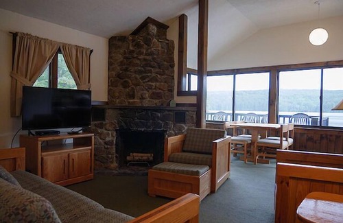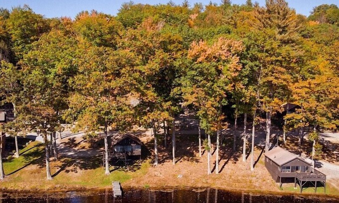 Located on Lake Shore Village Resort's property, Lake House #5 is a two-bedroom home with one bath and sits right on the shoreline. A favorite among fishing enthusiasts, the deck practically sits in the water. Pour yourself a cocktail, cast your line off the deck and try to land the one that got away! You'll also enjoy some amazing views of the opposite shoreline during the fall. All guests at LSVR have access to our private beach, pickleball courts, indoor pool and hot tub, kayaks, paddleboards, beach volleyball, basketball, horseshoes and more fun amenities!