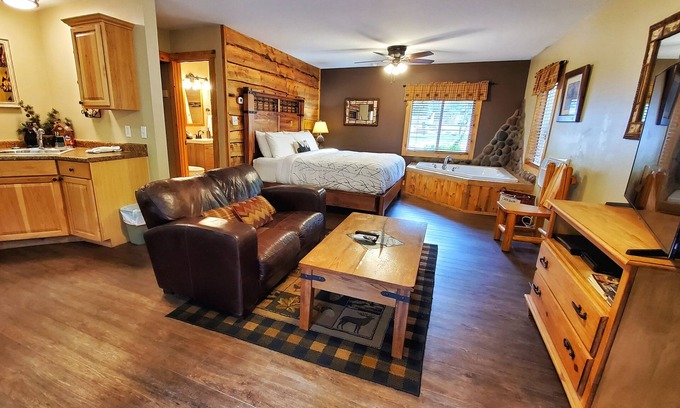 - Spacious Accommodations: With a king bed and ample living space, the cabin comfortably hosts couples and their guests, ensuring everyone feels right at home during your celebration.