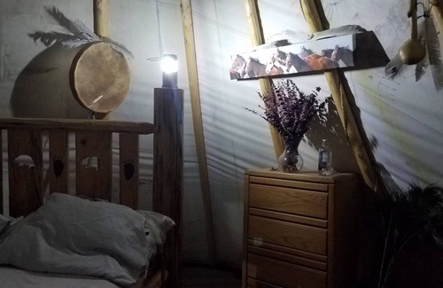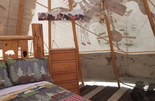 20 Ft Authentic TIPI.. nestled in trees in rural Montana with view of Mountains. A Queen + Twin bed with memory foam mattresses. Dresser. Electricity, fan. Bathroom is in building close to Tipi. Wifi, Barbque available, 2 3/4 acre pond close by, Gazebo and tables. No alcohol, no smoking, no events, no drugs, no pets. We are all special, but....The rules are here for a reason. No exceptions! We have farm animals, Peacocks and peafowl, small dogs, a cat, wildlife, Canadian Geese on the pond. Fishing permitted Seasonally and weather permitted (Catch and release). Fourth Season as hosts!