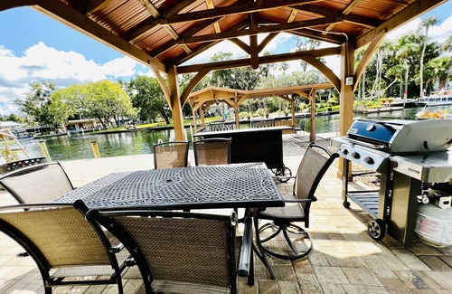 The house is on the main river close to Weeki Wachee springs and has great access to the Gulf of Mexico. you can dock up to a 24' boat. It is only minutes from Pine Island Beach Park, Hernando Beach and Sun West Park. It is also about an hour and half from world renowned Clearwater beach and Disney World. Get the best experience Florida can offer. You’ll love Weeki Wachee and the freshwater spring that feeds seventy two degree water year round. This house has 4 bedrooms. A master bedroom with a king size temperpedic matress and 38" TV and 2 guest rooms (two twin beds in one and a queen in the other.)with an queen size sofa bed in the living room. On the first floor there is two twin trundle beds to sleep four with a full bathroom. The house has 3 full bathrooms with a full kitchen, dining area, living room come with a 60" smart TV Sleeps 12 comfortably. Ceiling fans in each room. There is a roofed dock on the river in the backyard. Enjoy watching boats go by and manatees. Amenities include a gas grill, four kayaks, a canoe, and a paddleboard for you to have fun.