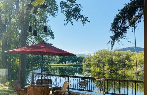 Beautiful three bedroom , two bath home on the river. There is also an extra bed in the loft. Fishing poles and 2 kayaks are available for your use. We also have space for an RV with full rv hookup & dump. You will be able to launch your boat at the state park and our home is right around the corner. The dock is 16' 2" long and we have bumpers on the dock for boats.