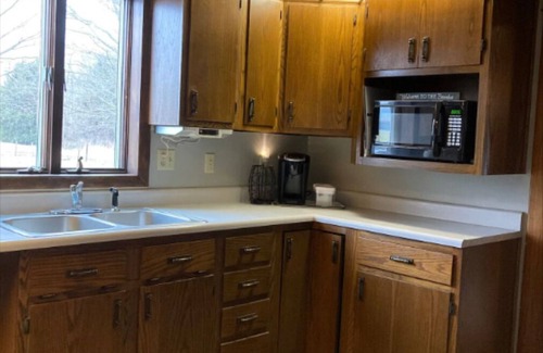 This newly remodeled farmhouse is cozy and private. Beautiful sunroom porch, private back yard, gas BBQ grill and games make this a great spot for families. Upstairs: 2 king bedrooms, & 1 twin bedroom. Downstairs: 1 queen bedroom, 1 twin bedroom, and 1 queen sofa bed & 2 full bathrooms. A nice office for remote work, fully functioning kitchen, and a laundry room on-site. Beautiful sunrises and sunsets, quiet county walks and a fire pit to use for an evening fire. 4 miles North of North Manchester Indiana. Enjoy looking out the kitchen window to the pasture with cows on this farm.