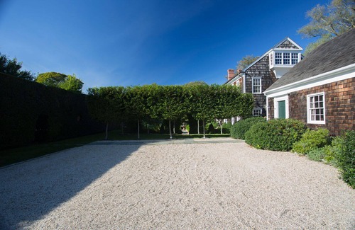 The property is a series of inerlocking gardens (including a vegetable garden), an orchard and rolling lawns hidden behind dense 20 foot tall hedges (the real defining element of the Hamptons). Only minutes down a beautiful farm field road are the wonderful beaches of the Atlantic Ocean. There are no guest houses, hotels or "share" houses in the Village of Sagaponack (and very few in the entire area) so the beaches are left to those owning or renting private single family homes here. At the compound, there is over an acre under fence (and a special toddler pool fence if you need it) so pets are welcome within reason.