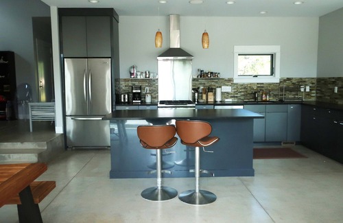 Modern 2 bedroom house, one king-size bed, one queen, with large open space kitchen/living room area, 2 bathrooms. All rooms with large windows, sliding doors, views, easy access to outdoors. Well-equipped kitchen. Outdoor grill on porch. Fire pit. Labyrinth. Roof deck for stargazing, though it's possible to stargaze from bed! Sound system throughout house. Wi-fi. Air conditioned. Roku TV. Everything you need for easy living in one of the most beautiful places in America. If you haven't been to this area, you owe it to yourself to come. Cathedral Valley. Hickman Bridge. Burr Trail. Great hikes and exploring by car. Good guides available for fishing, riding, jeep touring. An hour's drive from Boulder, with Hell's Backbone Grill and Burr Trail Grill. If you're doing all the Utah national parks, this is a great place to stay between Arches/Canyonlands and Zion/Bryce. Bryce is 2 hours away. Good food in nearby Torrey, including Torrey BBQ and Wild Rabbit Café. This is the vacation home of two artists based in Florida who hope you find the same calm and relaxation in this place that they do. Beautifully managed for us by April Morrison.