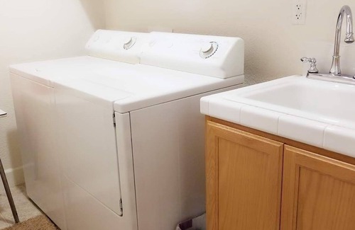 Two bedroom house each room lists separately. Each room is furnished with beautiful and comfortable style. The private room comes with a window view, wi-fi, full size bed, sheets, pillows and comforters, bedside lamp, tv, drawers, wardrobe and hangers. It is equipped with central air conditioning and heating, you will stay very confortable during the summer months and the cooler winter periods. Including a “shared bathroom,laundry, kitchen, dinner room, living room”. This house isn’t suitable for wheelchair. “TravelLovers#StayComfortableinVacaville”.