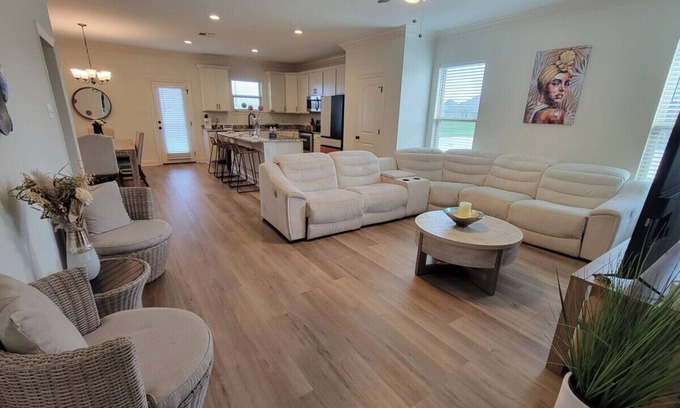 Escape to this beautifully decorated 4-bedroom, 2.5-bath country retreat located in East Lake Charles, where comfort meets charm and the sweet life begins the moment you arrive. Nestled in a peaceful setting with room to sleep up to 12 guests, this home is perfect for families or groups of friends looking for something special.