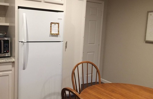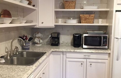 Newly and fully renovated, this lovely guest house sits in a quiet neighborhood just blocks away from delightful downtown Tomball. Since most of our guests are couples and families transitioning from one home to another, we strive to provide you with a comfortable and stress-free place-of-in-between. That's why we call it Brightside. We want you to see the bright side of things every time you walk in the door! Brightside II is an 900 square foot guest house situated on the same property as Brightside 1, which is also another very private vacation rental. Guests will enjoy two private bedrooms that sleep 4 with room for a fifth on an inflatable, a quaint and all-new kitchen, a comfortable living area, an indoor laundry room, space for approved pets, and all the shopping and charm Tomball has to offer. You won't find a more comfortable short-term residence than our Moore Street home-away-from-home.