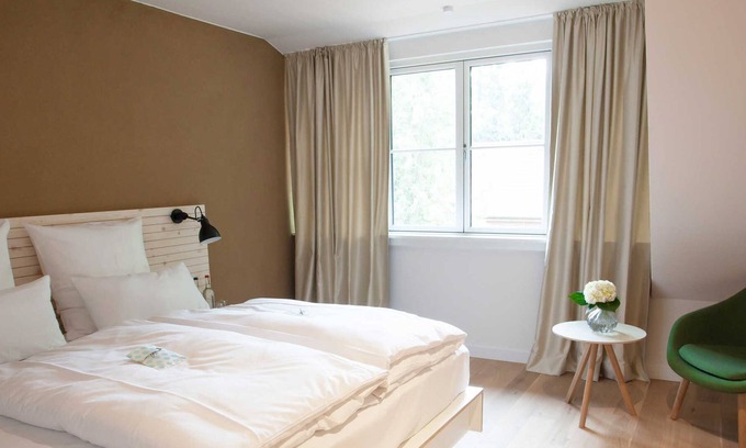 The Nordenholzer Hofhotel is a gem in the midst of nature. Nestled in the historic ensemble of Nordenholzer Hof with its first-class restaurant, the hotel offers wonderful moments of space. Twelve individually designed rooms and a team that cares about your good mood make for a special home feeling. Picturesquely embedded in the varied march, moor and Geest landscape of the Oldenburg country is the state-recognized resort Hude and invites you to discover, experience and relax. About 2 km from the center is our stylish and individually designed farm hotel, which was opened in June 2019.Opening times Restaurant: Wednesday-Saturday from 18:00 clock, Sunday: from 12:00 clock á la carte, from 14:00 clock coffee & Cakes, from 18:00 à la carteTable reservations are highly recommended. Room to dream: Each of our double rooms has a king-size bed, desk and seating area. The modern and high-quality bathroom is equipped with a rain shower. Some rooms have a terrace. Breakfast times: Monday-Friday 07:00 to 10:00 / Saturday and Sunday 08:00 to 11:00 Breakfast, bed linen, towels, parking and Wi-Fi are included in the room rate.