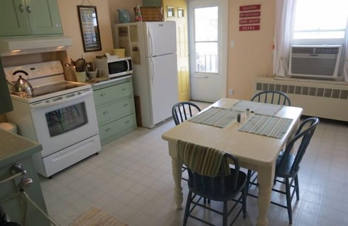 Eat in, dine out, or take out in the spacious convenience of the modern kitchen and dining area. Linens and kitchen essentials for four. Furnished with antiques and clean, comfortable furniture. Wi-fi Internet, DirecTV, and phone.