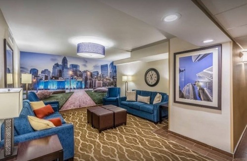 This beautiful Charlotte hotel is located in the heart of the Charlotte Executive Park, less than 5 minute walk to Light Rail which will take you downtown to the NBA All Star Game.