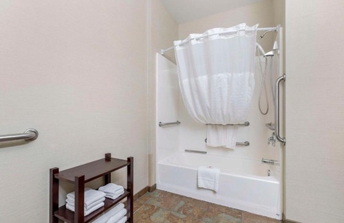 The Comfort Inn & Suites Mitchell I-90 hotel is located close to many local points of interest and attractions. This Mitchell, SD hotel is minutes from the Corn Palace multipurpose center. Dakota Wesleyan University is only one mile away and Cabela's, World's Foremost Outfitter, is less than one-half mile away. This Mitchell, SD hotel offers guests many fine amenities, including: free wireless high-speed Internet access, free local calls, exercise room Enjoy our free hot breakfast featuring eggs, meat, yogurt, fresh fruit, cereal and more, including your choice of hot waffle flavors. The hotel also features an indoor waterpark featuring a large heated pool, hot tub, 200-foot waterslide and children's splash pool. Business travelers to this South Dakota hotel will welcome additional conveniences like a business center and access to copy and fax services. On-site conference facilities accommodate up to 500 people for most events, receptions and business functions. All guest rooms come equipped with refrigerators, microwaves, coffee makers, hair dryers, irons, ironing boards and 32-inch flat-screen televisions. Some rooms have sofa sleepers. This is a 100 percent nonsmoking facility. Parking and laundry facilities are provided on the premises for added guest convenience.