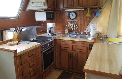 This houseboat is very comfortable and has all the equipment your family would need to enjoy a relaxing time on the water. There is a full fridge, electric stove/oven, microwave, coffee pot and all the cooking implements and utensils necessary to prepare meals for your family. While you are with us, you can have the use of our Kayak at no additional charge. You can enjoy campfires at night and the fire wood is free. There is a shed full of board games and lawn games to keep the family occupied. You will enjoy the serene and beautiful Seneca/Cayuga Canal. The water is clear and swimming is allowed. We are sure that you will want to come back