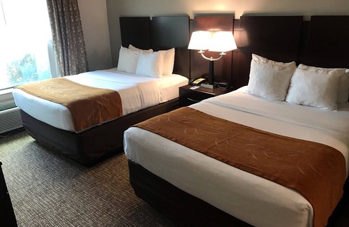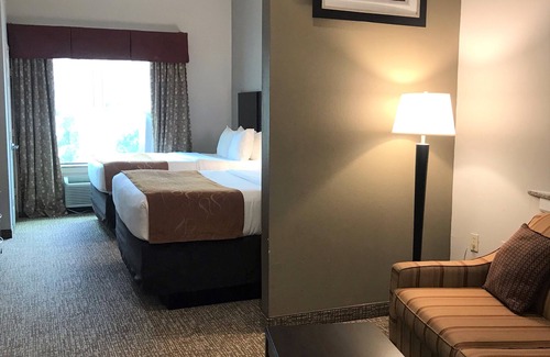 Comfort Suites Bay City offers 68 air-conditioned accommodations with complimentary newspapers and coffee/tea makers. Accommodations offer separate sitting areas and include sofa beds. 40-inch plasma televisions come with premium cable channels. Guests can make use of the in-room refrigerators and microwaves. Bathrooms include shower/tub combinations with hydromassage showerheads, slippers, complimentary toiletries, and hair dryers.