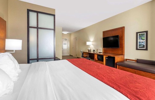 This all-suite hotel features an indoor heated pool, gym and spacious accommodations with a flat-screen cable TV and free Wi-Fi. Comfort Suites Florence is 4 miles from the Florence Amtrak. A microwave, refrigerator and coffee maker are included in each contemporary suite. Decorated with a red wall and dark furniture, the suites have a sofa bed and a work desk. Guests can enjoy a daily continental breakfast. The hotel also offers a sundry shop and a business center. Florence Comfort Suites is within a 10-minute drive of Beaver Creek Golf Club, Palmetto Shores Lake and Darlington Raceway.