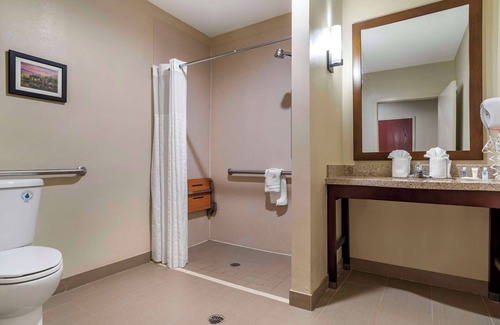 Comfort Suites Pell City I-20 exit 158 offers 63 accommodations with coffee/tea makers and hair dryers. Accommodations offer separate sitting areas. Beds feature pillowtop mattresses. 47-inch LED televisions come with premium cable channels. Refrigerators and microwaves are provided. Bathrooms include shower/tub combinations.