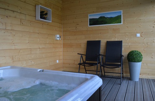 Comfortable 100m² wooden chalet with private spa is located in Le Vigean. Comfortable 100m² wooden chalet with private spa provides accommodation, featuring Balcony/Terrace, Laundry, Internet, among other amenities. This Ski Chalet features Balcony/Terrace, Laundry, Internet, to make your stay a comfortable one.