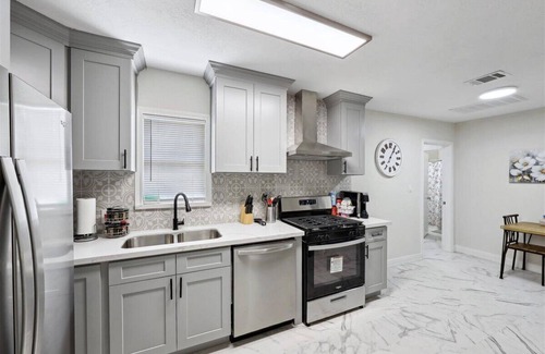 This inviting 2-bedroom, 1-bath home offers all the comforts of home with modern conveniences. Each room features a Smart TV, and high-speed Wi-Fi keeps you connected during your stay. Cook up your favorites in the fully stocked kitchen, then unwind in the private, fenced backyard complete with a BBQ pit. Fresh linens, towels, and in-unit washer and dryer are provided—just bring yourself and settle in!