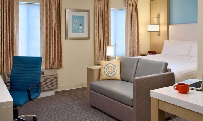 Our pet-friendly property boasts fully furnished rooms and suites with modern amenities, including a fully-equipped kitchen and a perfect work environment to help you concentrate on your work and business-related priorities. Get off to a great start with a pre-packaged breakfast and quality coffee. The complimentary shuttle will take you anywhere within a 3-mile radius of the property. Families may enjoy the outdoor seasonal swimming pool and sport court. Barbecue and picnic facilities are free of use. The fitness center is open 24/7 to help you stay in shape. Free parking and WIFI are also offered. Guest reviews highlight the top-notch customer services of the friendly and accommodating staff.