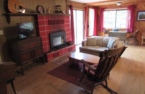 The rustic cabin is located on the West Shore.. It is opposite the lake's only island and marshy area where wildlife abounds.