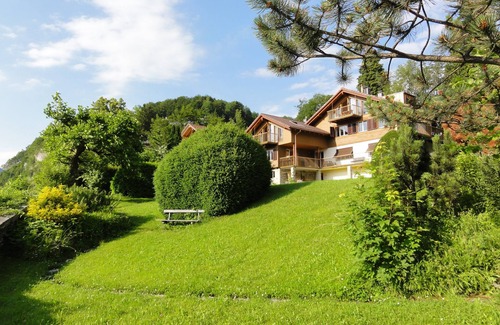 The apartment is located in a newly renovated holiday home in chalet style and offers an incomparable view of the lake and mountains. The house is located on a rock terrace directly above Lake Lucerne in a well-tended garden in the immediate vicinity of the Swiss Holiday Park leisure, bathing and wellness center and the historic sites of Switzerland. The house is easily accessible by public transport. Parking lots available.