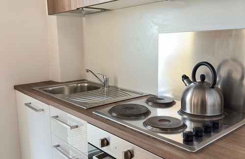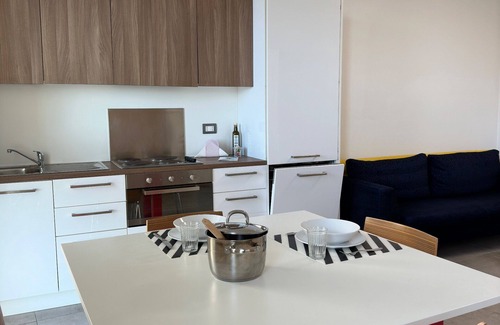 Apartment of 60 square meters, can accommodate two adults. Composed of a bedroom (double bed or two single beds), large bathroom with shower, washing machine, fully equipped kitchen with oven and dishwasher, dining table, sofa, 32"TV. The equipment includes crockery, sheets, towels and basic necessities. Underfloor heating. Cot available on request. Wifi network. Private outdoor parking in front of the residence.