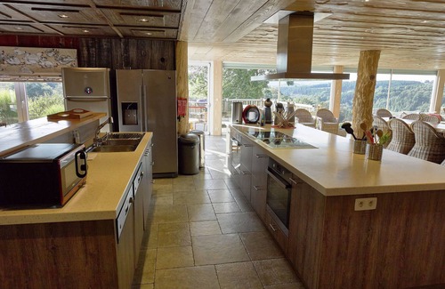 The chalet is nicely decorated and offers a beautiful view over the beautiful Ambleve Valley from the large windows in the living room. It is built with the use of natural materials like wood and stone and immediately generates an earthly feeling. Spend an evening by the fireplace in the cosy living room with the whole family to complete the perfect holiday feeling.