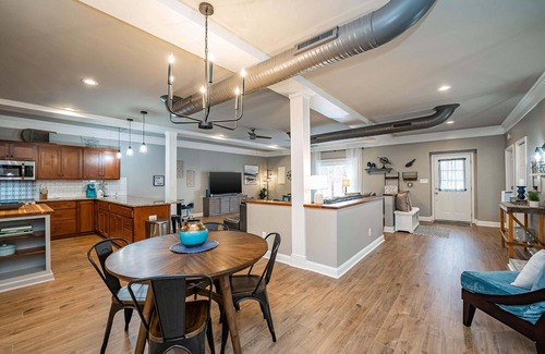 Built in the 1800's as a Cotton Warehouse, this Cute Comfortable Cottage Is Located on the Historic Laurens Square Features Open Floorplan Perfect for Gathering! Seating for 4 at the Bar & Table Seats 4! 80" TV, Oversized Chair & Sectional For Everyone to Watch the Game! 64 Game Video Game 2 Person Console Includes All the Classics - PacMan, Frogger, Donkey Kong, Galaga & More!