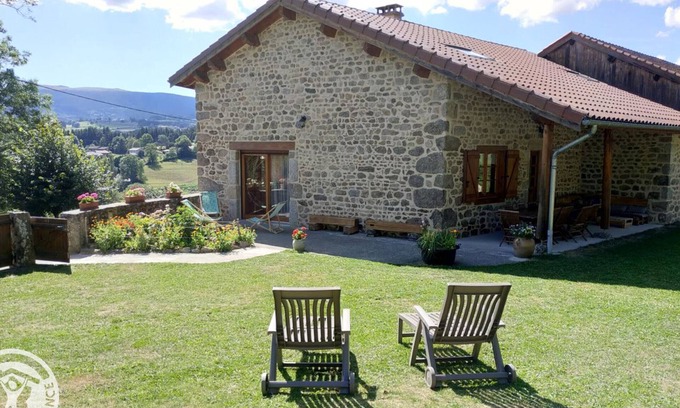 Comfortable, very well-equipped gîte (160 m²). Ground floor: large, spacious, bright living room, fully equipped fitted kitchen (raclette and fondue set) with generous table, lounge with fireplace (insert), sofas, armchairs, 98cm full HD TV, library, various board games; bedroom with 1 160cm bed, baby bed (60*120cm), bathroom: bathtub, Italian shower, sauna, washing machine, tumble dryer. Separate WC. Upstairs: green bedroom: 4 90cm beds (bunk beds), extra child's bed (80cm), pink bedroom: 2 90cm beds, blue bedroom: 1 160cm bed; shower room (hydromassage shower) Separate WC. Pleasant private enclosed garden, lawned and flowered (800 m²), 2 terraces, one of which is covered; to relax, garden furniture, sofa, deckchairs, sun loungers, portico. Plancha, electric barbecue. Close to nature, on the edge of the forest. Non-smoking cottage, pets not allowed due to allergies. Free Wi-Fi. You will be charmed by the warm and cozy atmosphere of this stone house in the Monts du Forez, its authentic renovation with stone walls, decorative bread oven, French ceilings, parquet floors, exposed beams. The cottage offers a beautiful unobstructed view of the surrounding mountains (and the highest peak in the department: Pierre-sur-Haute: 1634 m). Ideal for relaxation (sauna, terraces including one covered, large grounds) and outdoor activities, summer and winter. Numerous hikes start from the cottage. Located in a quiet area, at an altitude of 950 m, in the Livradois Forez Regional Natural Park, 10 minutes from the Chalmazel ski resort and the Col de la Loge Nordic ski area. Ideally located for family and friends, just 1 to 1.5 hours from St-Étienne, Clermont-Ferrand, and Lyon. The owner works shifts, so please contact him before booking to see if these changes are possible.
