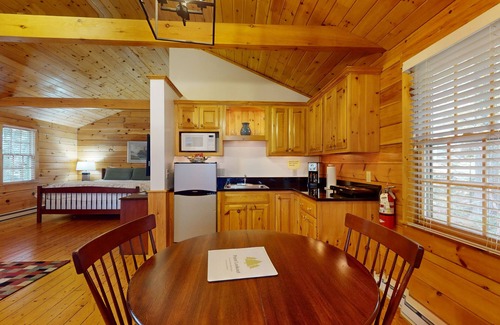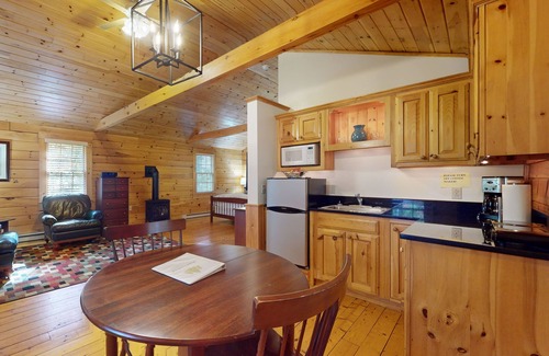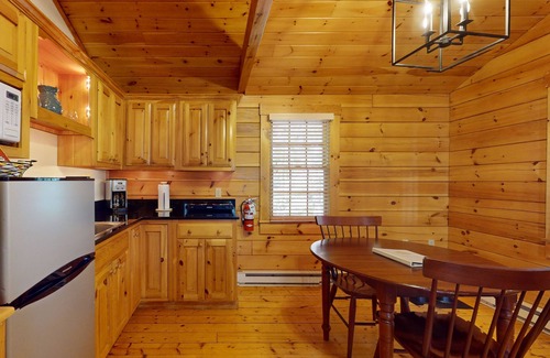 This cabin offers a gas fireplace, air conditioning, and complimentary wireless Internet to ensure a comfortable stay year-round. Decompress by streaming your favorite TV shows or bring a deck of cards to play at the dining table. Enjoy the convenience of a community amenities such as a laundry room, well-organized fitness center, basketball court, and ping-pong table open seasonally April through October (closed November thru March).