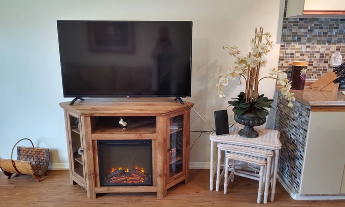 3 flat screen TV's, internet and phone included. Electric fireplace in family room.