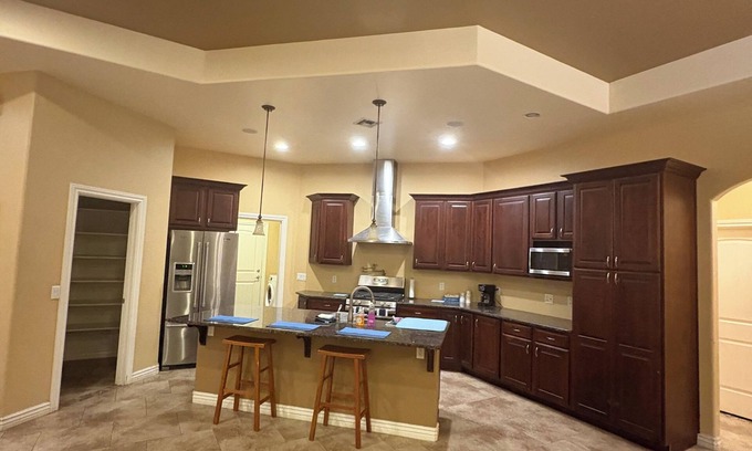 Escape to this charming newer spacious house in picturesque Safford with Mountain View’s. Central location 4 bedrooms including 1 king bed and 3 queen beds, along with 3 bathrooms featuring a jetted bathtub and shower, guests will find their stay here enjoyable and relaxing. The living room with an extra sofa bed offers additional space for a peaceful retreat. Our place will help you feel at home while you're traveling here for work, or pleasure in Safford.