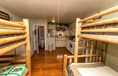 This home sleeps 10. Beds are bunks with 2 full size and 6 twin beds. Six bunks. Full kitchen just bring your food and drink. Towels and linens are also provided. Fishing and hunting trips also available year round.